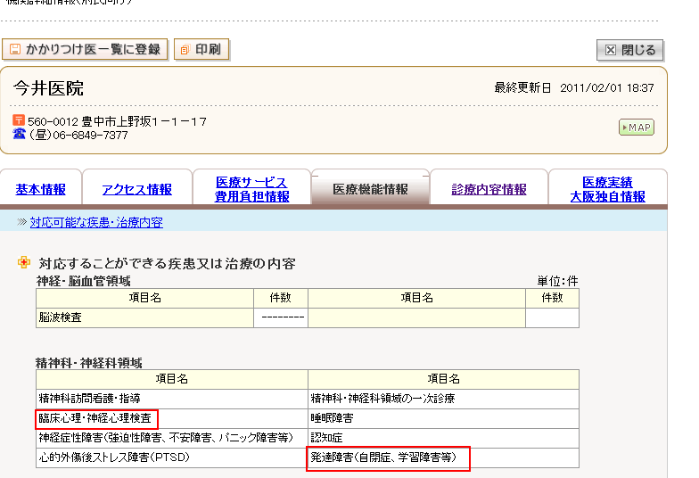 実際の調査結果である大阪府で大人(成人)の発達障害を診断してくれる病院をご覧ください