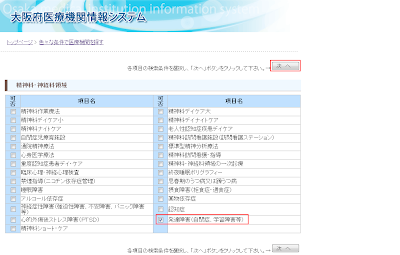 3.「発達障害(自閉症、学習障害等)」をクリックし、「検索」ボタンをクリックします。