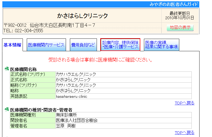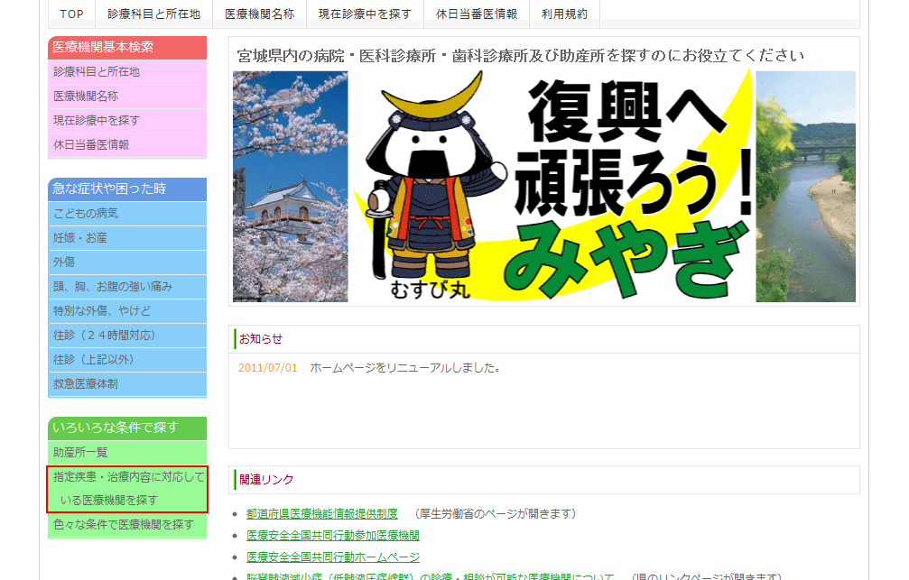宮城県医療機能情報提供システムにアクセスし、下記のガイドに従ってください