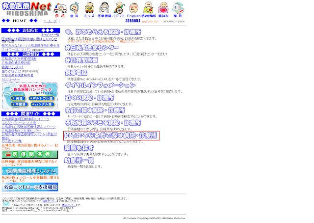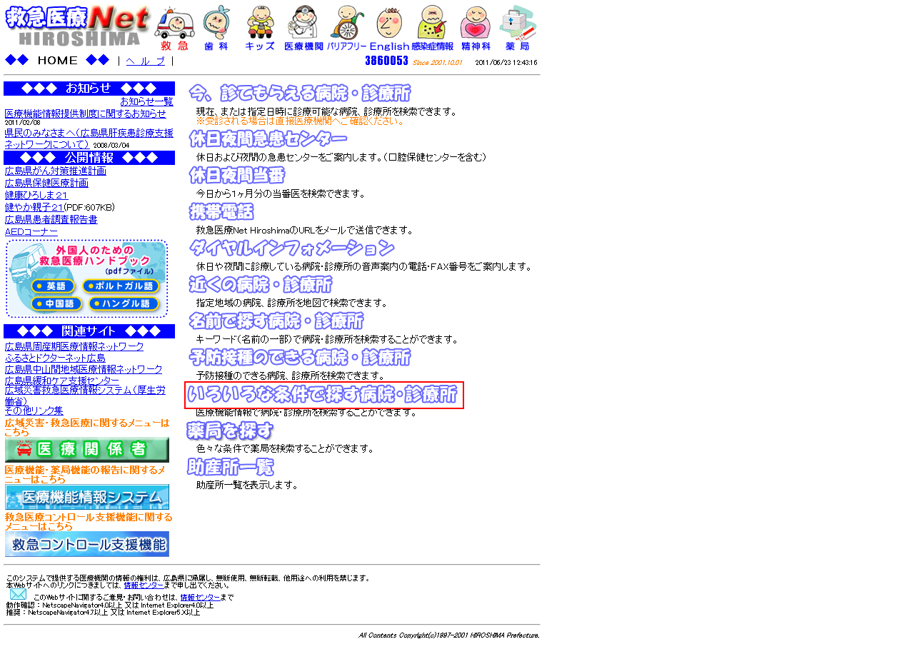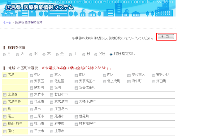 広島県救急医療情報ネットワークにアクセスし、下記のガイドに従ってください