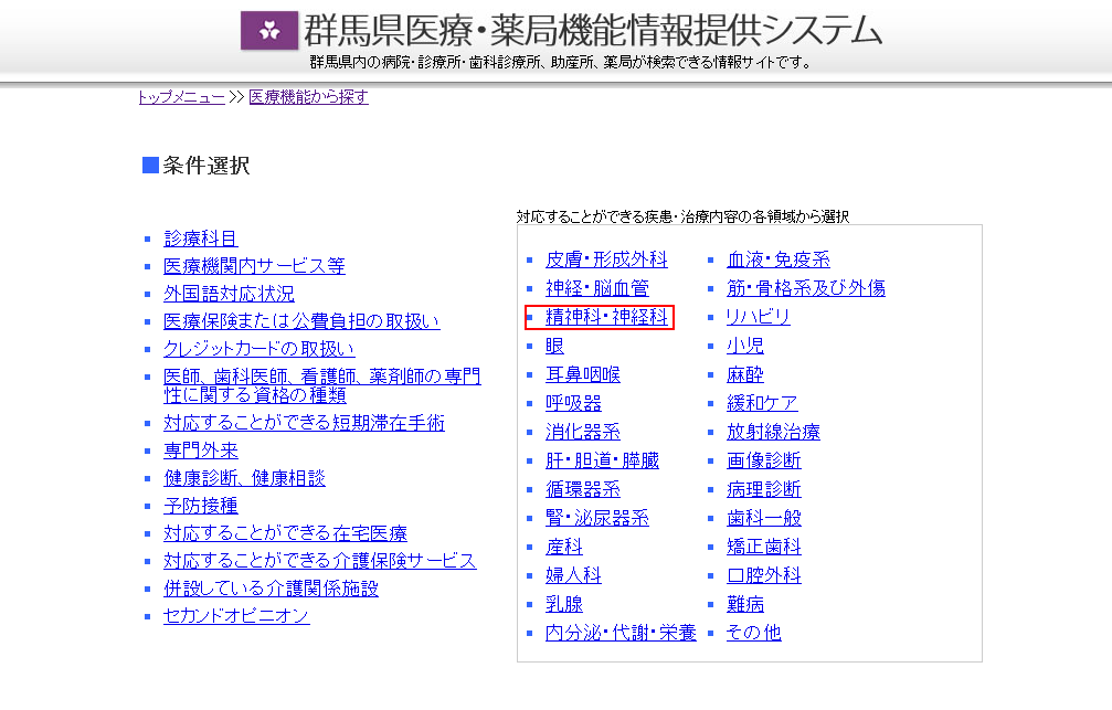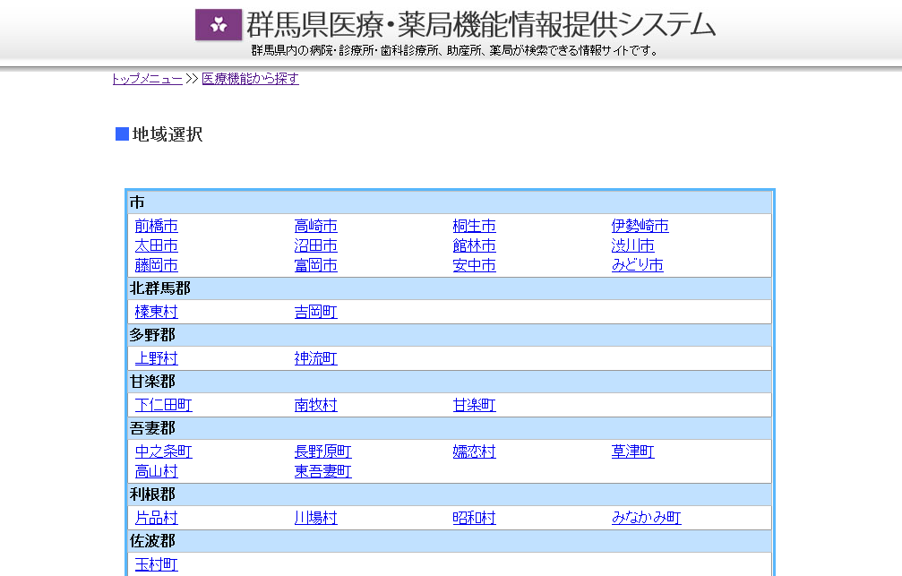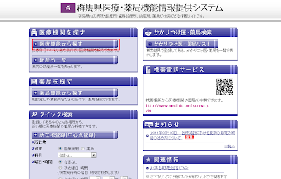 群馬県医療・薬局機能情報提供システム にアクセスし、下記のガイドに従ってください