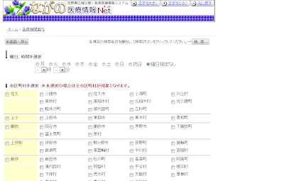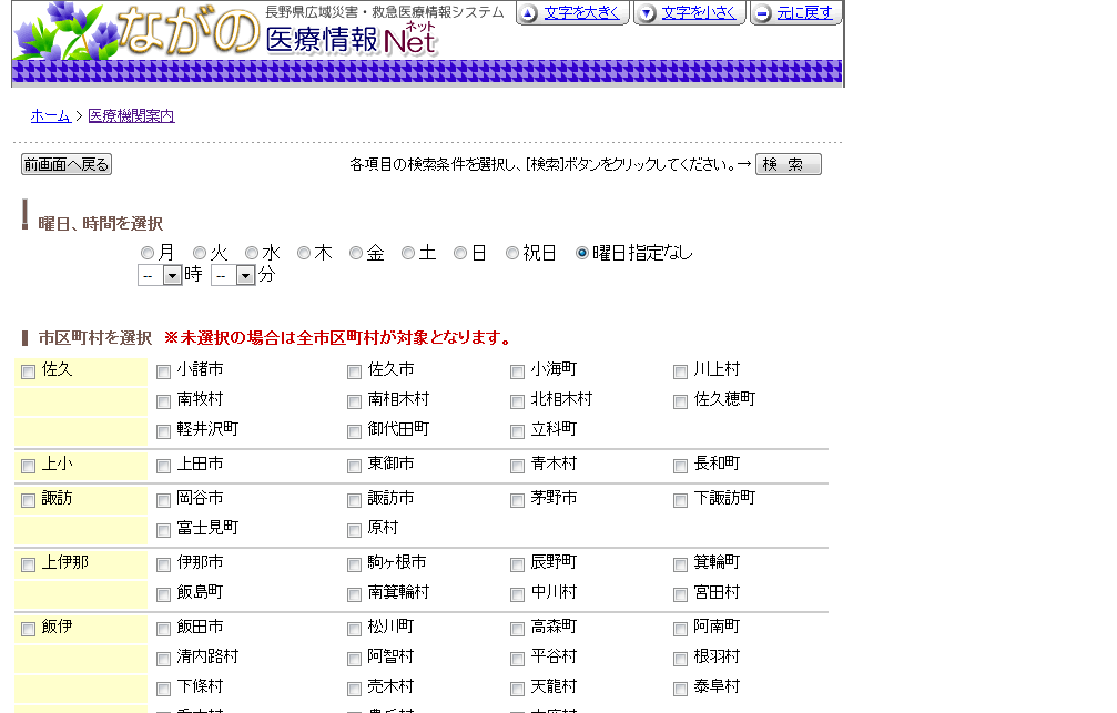 5.検索結果一覧が表示されます。行きたい病院をクリックしてください(大人と子どもの区別なく表示されるため、電話などでお問い合わせください)