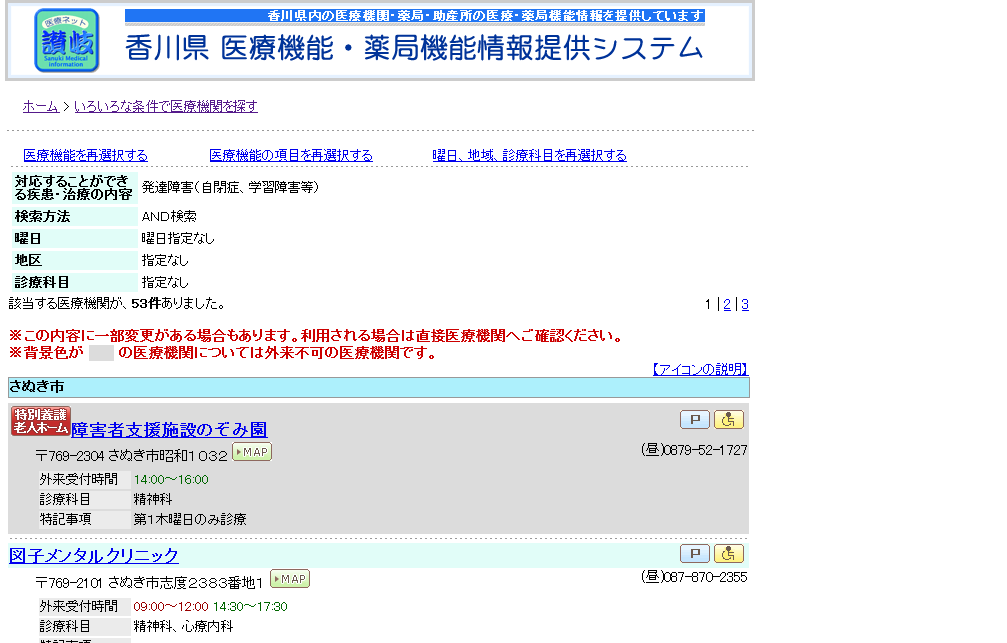 実際の調査結果である香川県で大人(成人)の発達障害を診断してくれる病院をご覧ください