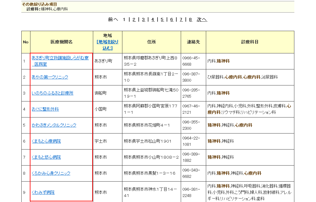 実際の調査結果である熊本県で大人(成人)の発達障害を診断してくれる病院をご覧ください