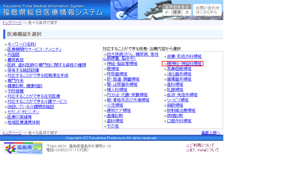 2.「精神科・神経科」をクリックします