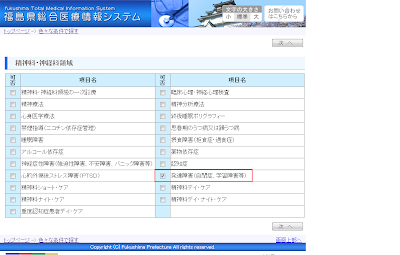 7.「発達障害(自閉症、学習障害等)」と「臨床心理・神経心理検査」があることを確認します。