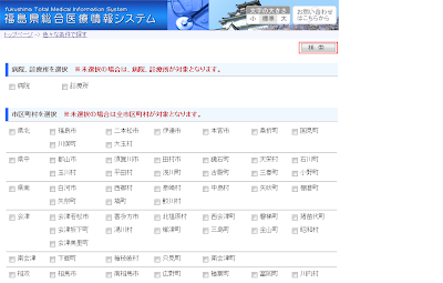 4.「地域」を選択せず、検索ボタンをクリックします。(下記の例では青森をクリックします)
